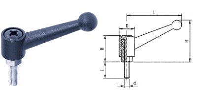 A06 KASSNER-Hebel verstellbar Form B, aus Zinkdruckguss, Schraube aus Stahl