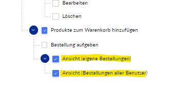 - Ordini di tutti gli utenti: Gli utenti con questa autorizzazione aggiuntiva possono visualizzare anche gli ordini degli altri utenti dell'azienda. Gli ordini personali possono essere visualizzati separatamente nella sezione "I miei ordini".