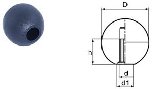 B08 Maniglia a sfera TP in termoplastico, con foro a pressione